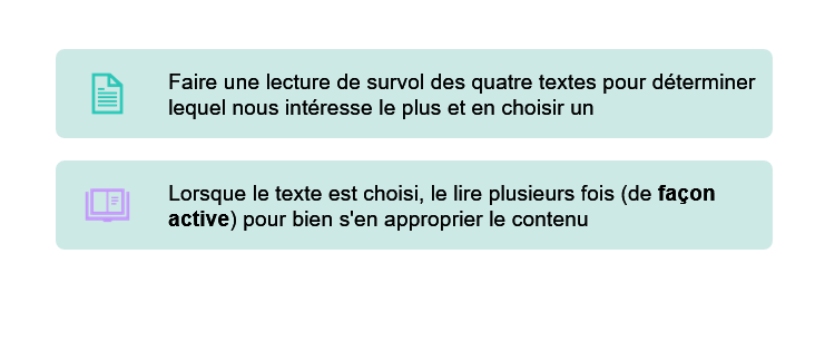 Vous devez faire un compte rendu d’un de ces quatre textes, qui sera suivi d’une réflexion personnelle. Vous n’avez à préparer qu’un seul texte.